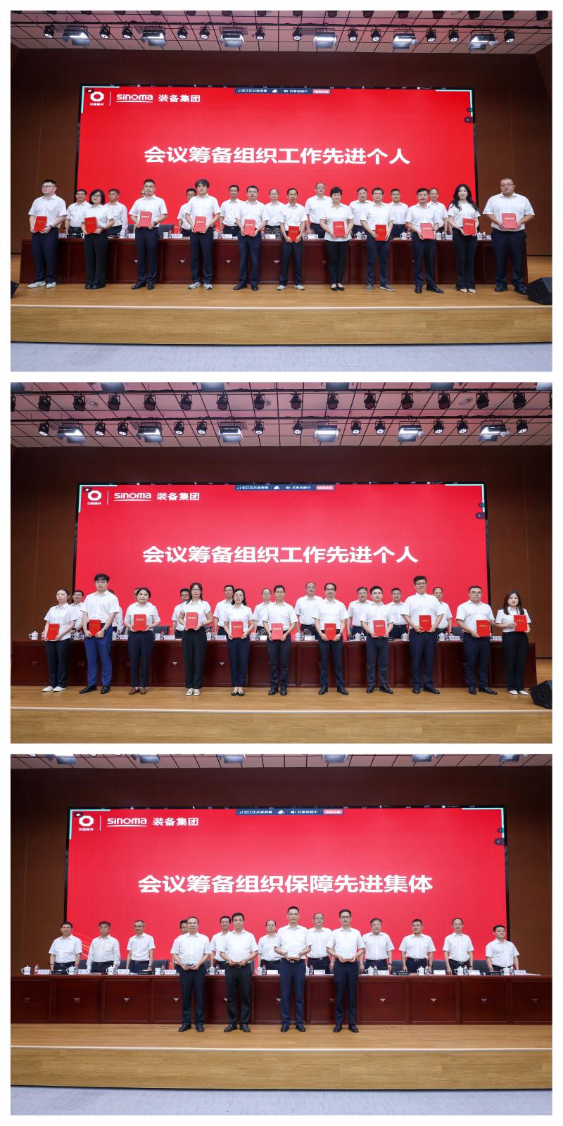 裝備集團黨委副書記殷召飛宣讀《關(guān)于表彰中材國際第三屆水泥綠色智能發(fā)展大會會議籌備組織工作先進個人及會議籌備組織保障先進集體的決定》,公司領(lǐng)導(dǎo)班子為獲獎代表頒獎。